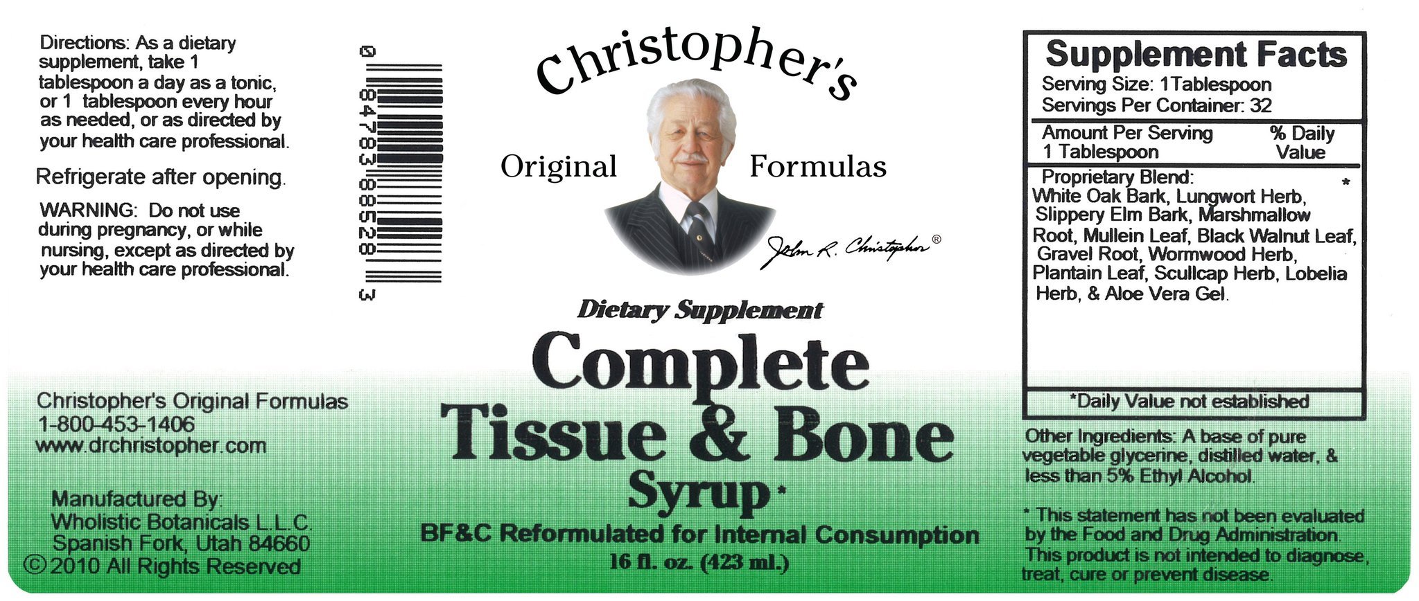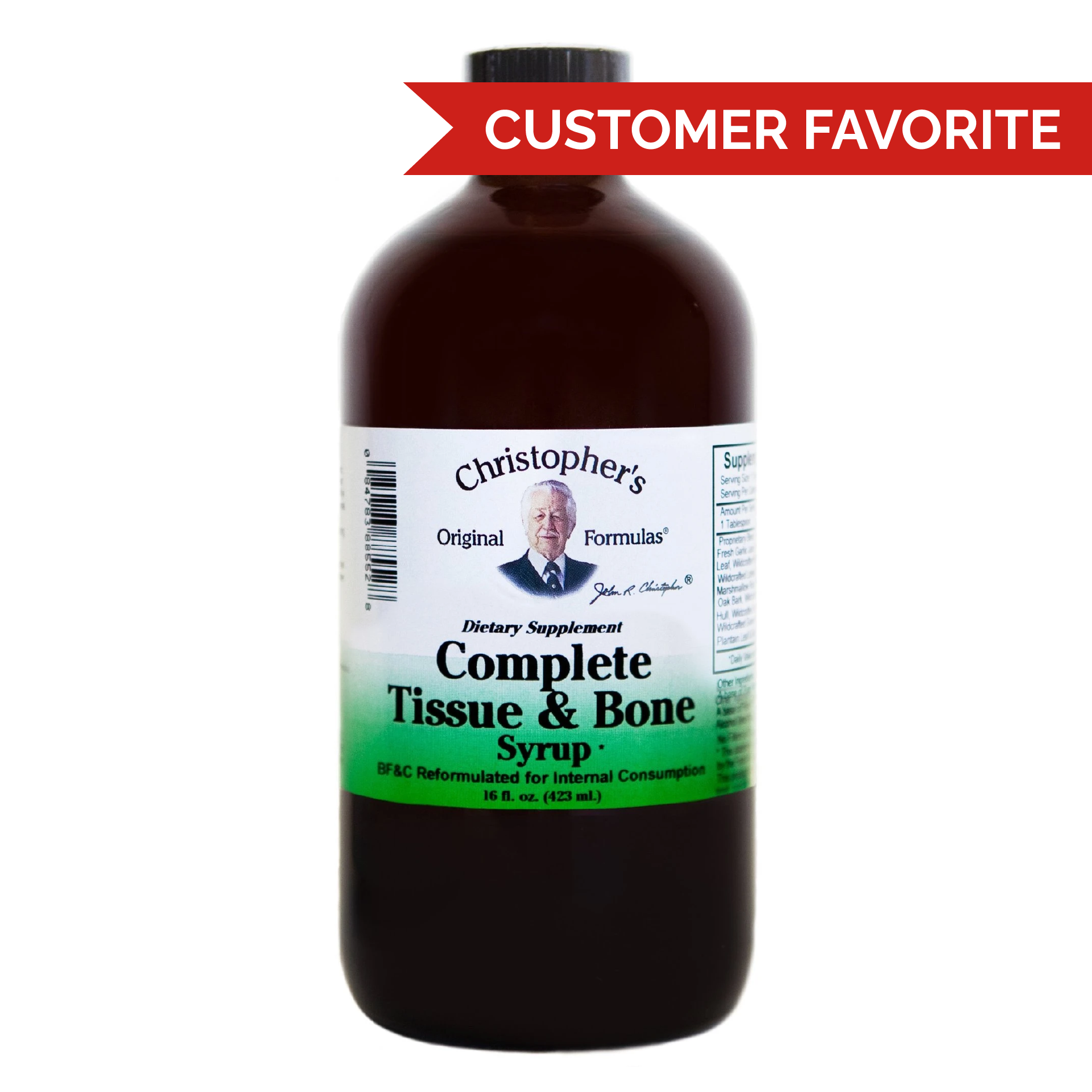 Dr. Christopher's time-tested Complete Tissue & Bone Syrup supports bones, skin, tissue, hair, nails, teeth & gums.